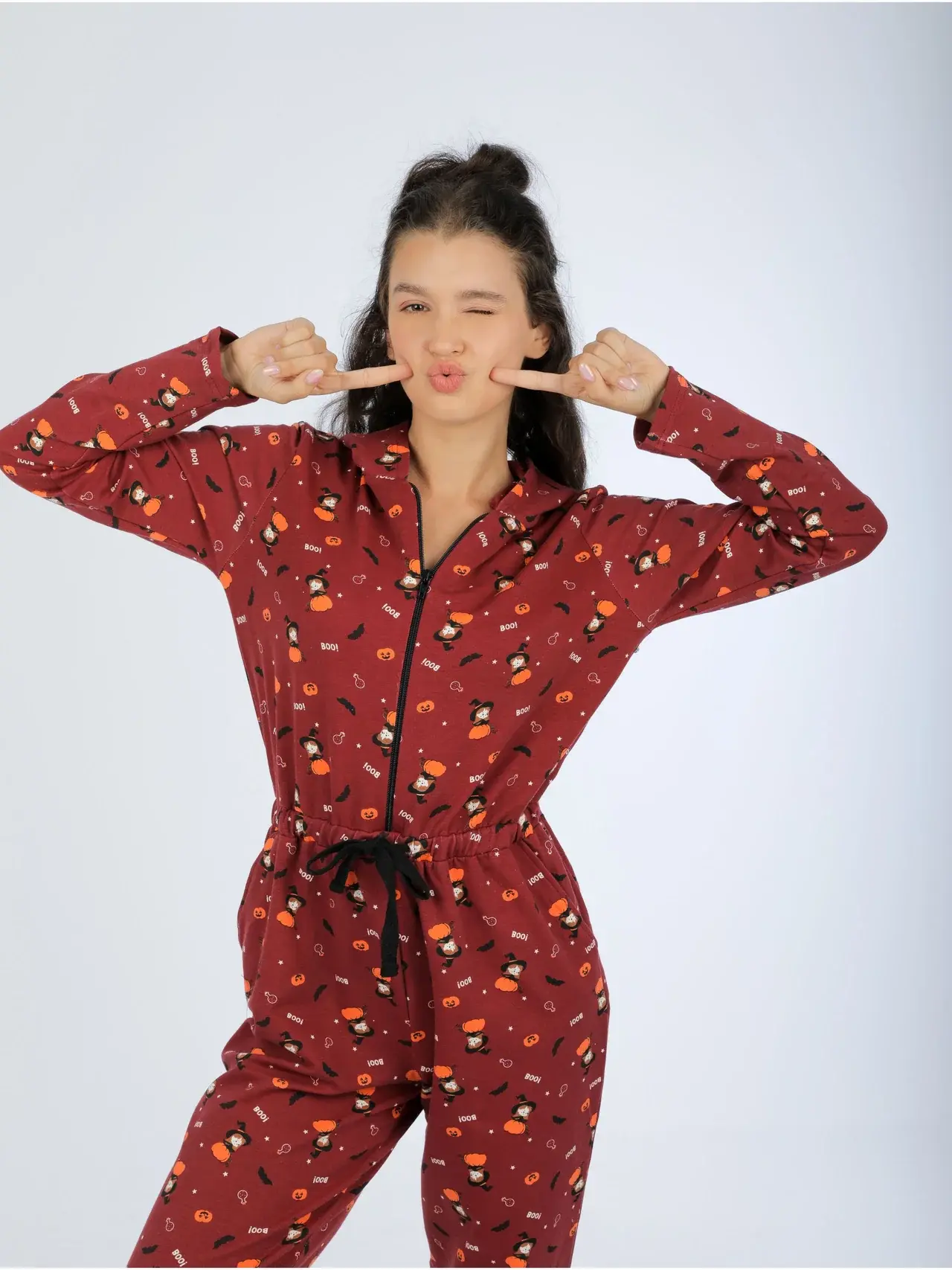 winter red jumpsuit